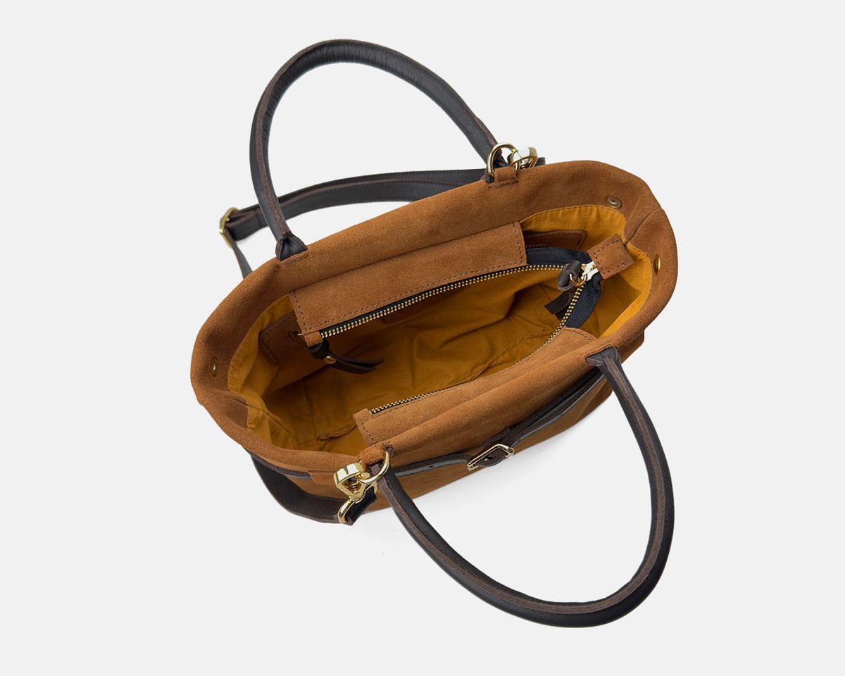 Ce mini sac cabas en cuir, compact et léger, est conçu pour transporter vos essentiels avec une touche d'élégance. Il est doté de deux anses courtes pour un porté main et d'une bandoulière réglable. Sa fermeture zippée et sa poche intérieure permettent une organisation optimale. Conçu et fabriqué artisanalement en Espagne.