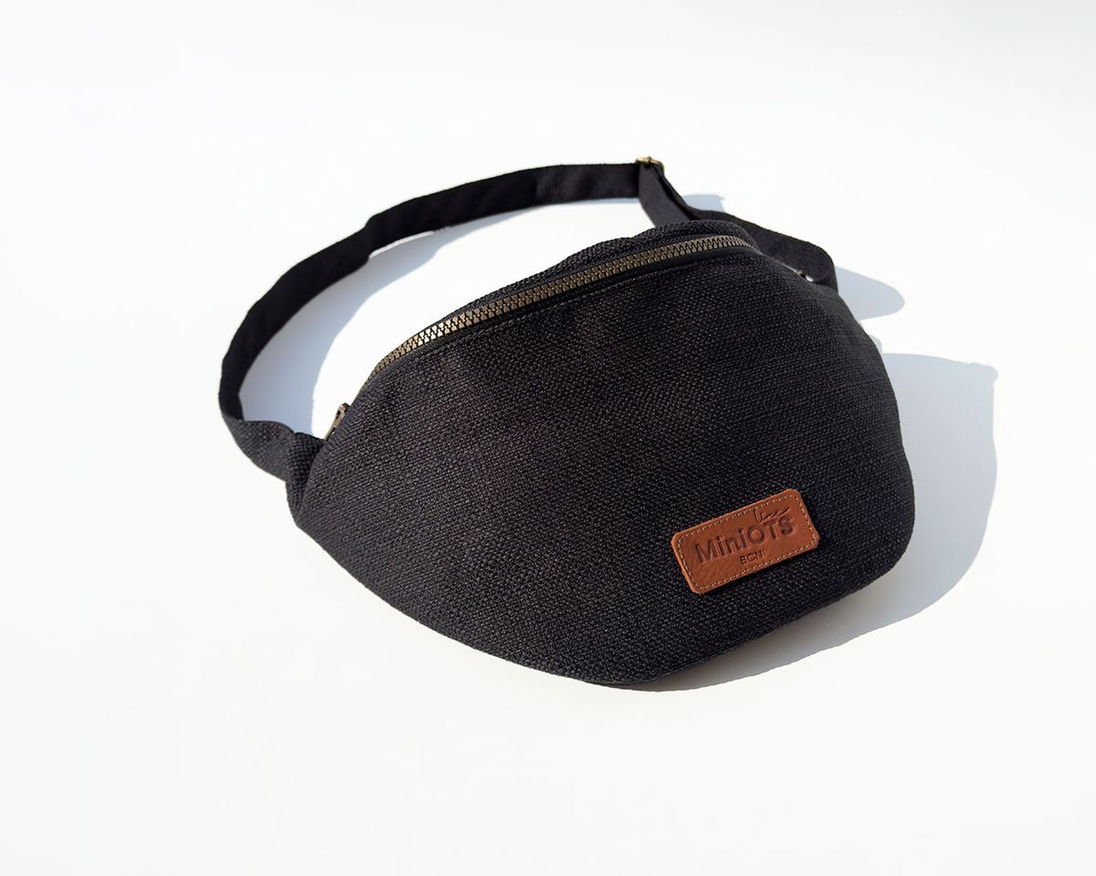 Sac banane bandoulière en polyester et coton de taille moyenne.