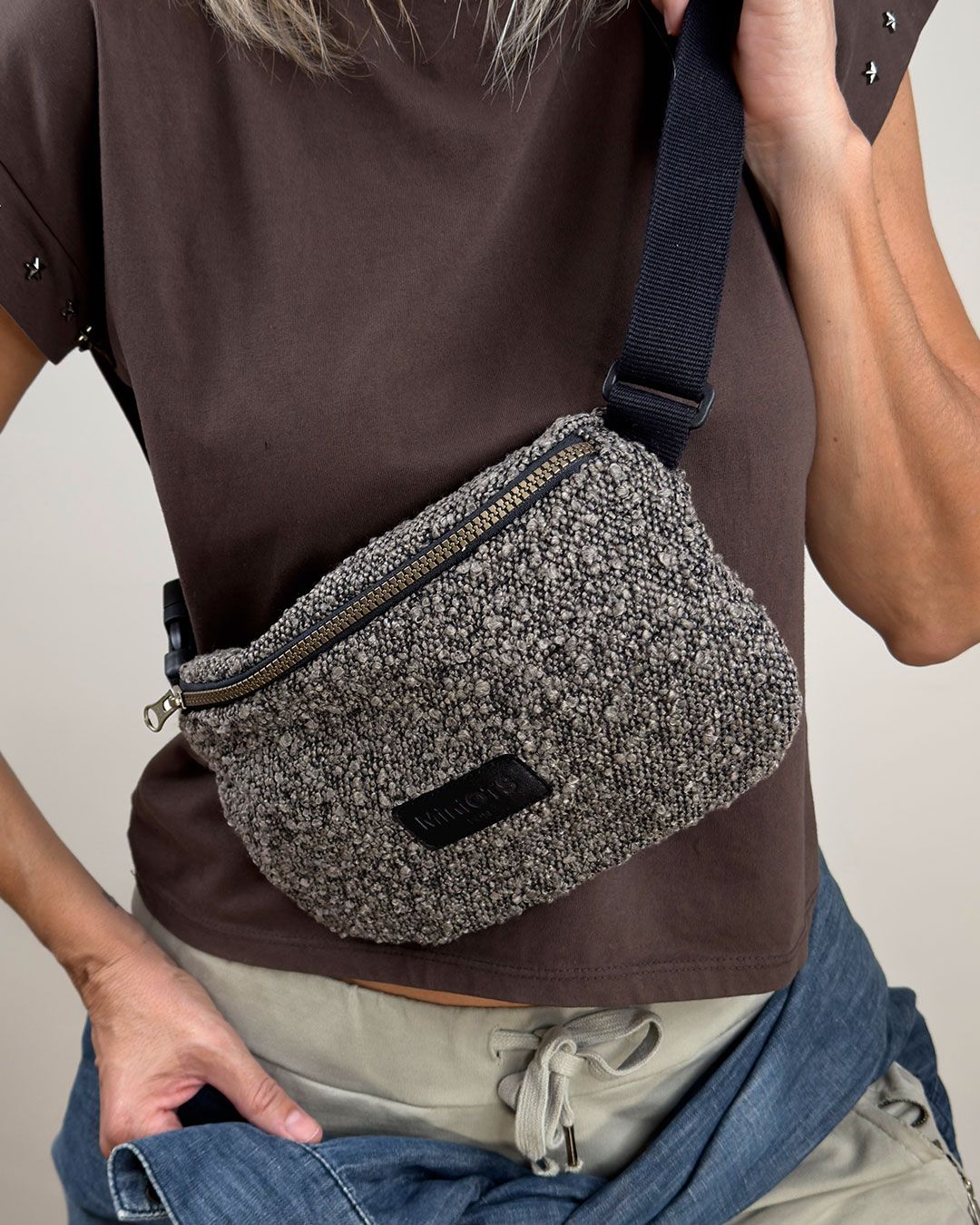 Petit sac banane en tissu éponge très léger, fermé par une fermeture éclair.