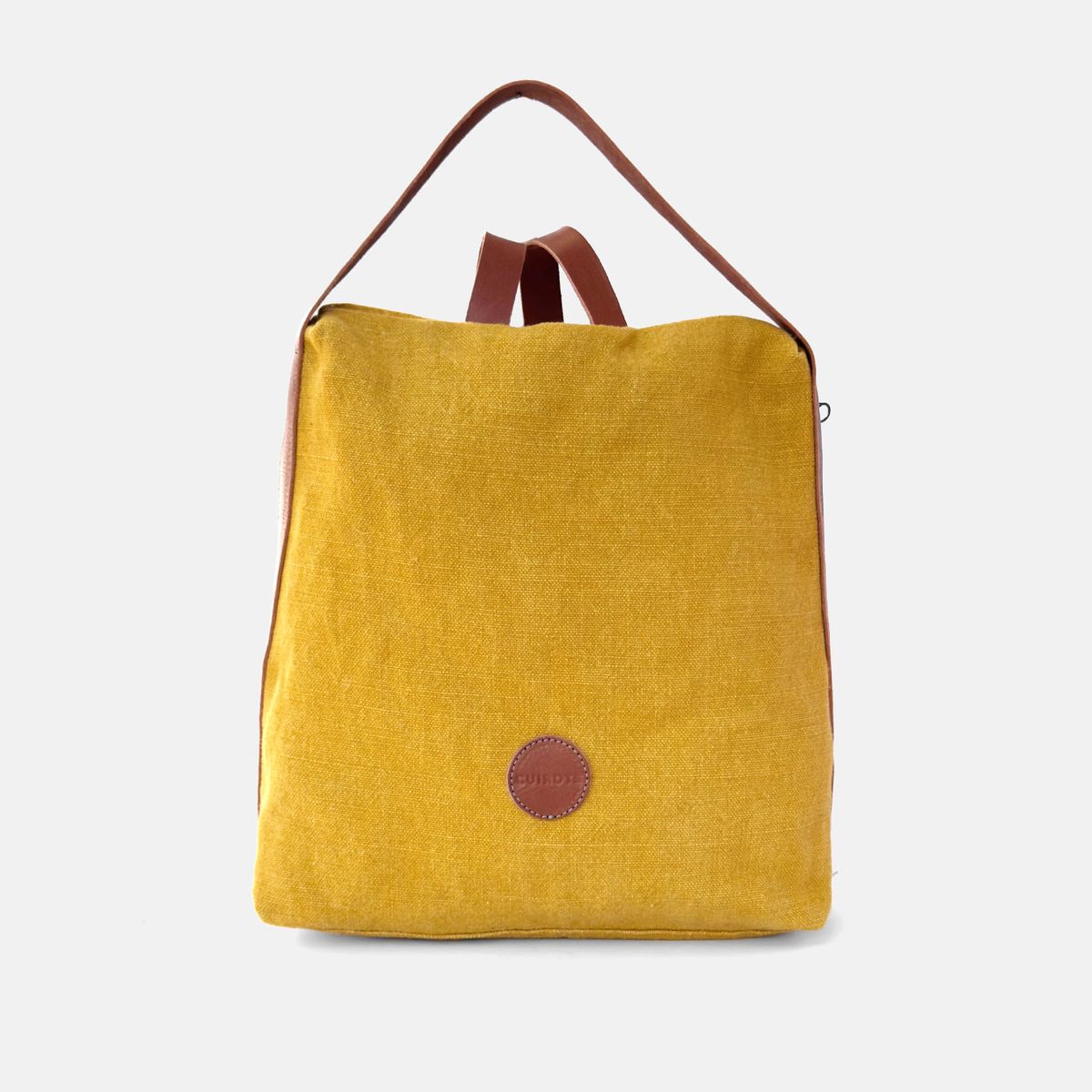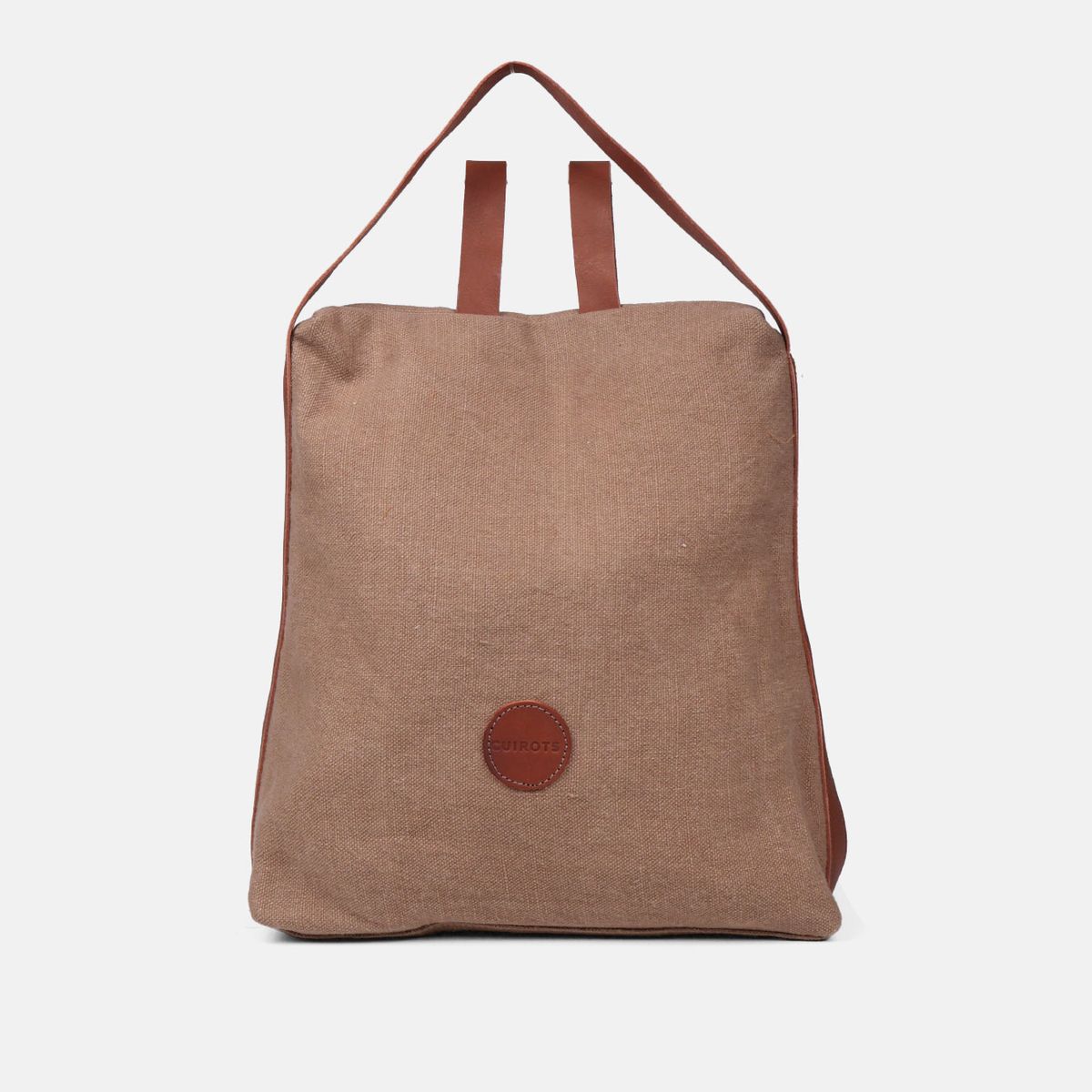 Grand sac à dos antivol. En lin avec poignées en cuir.
